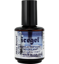 ICE GEL is a top coat for acrylic systems and natural nails. Its formula has an excellent shine and prevents color staining from nail polishes. It dries in approximately 2 minutes,